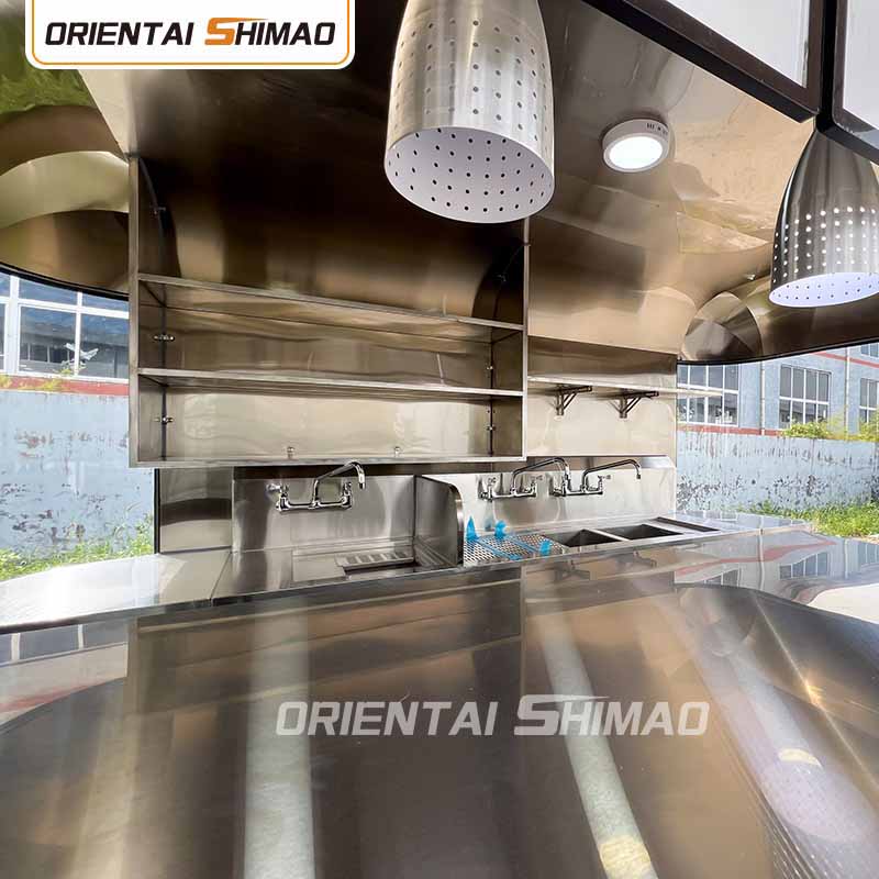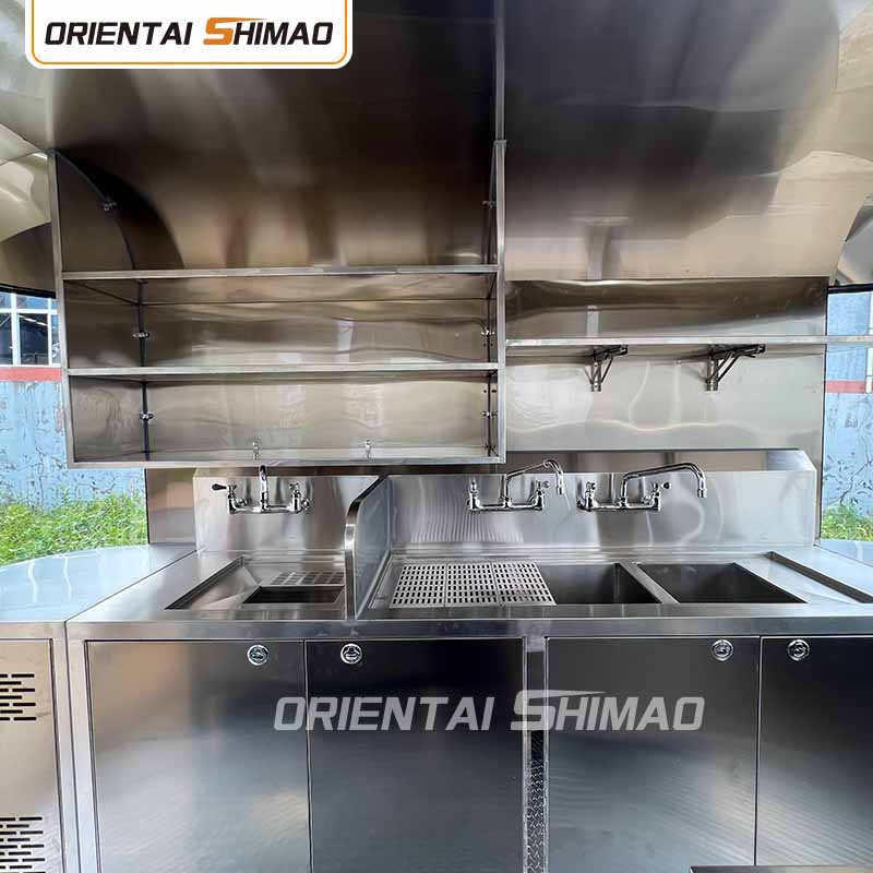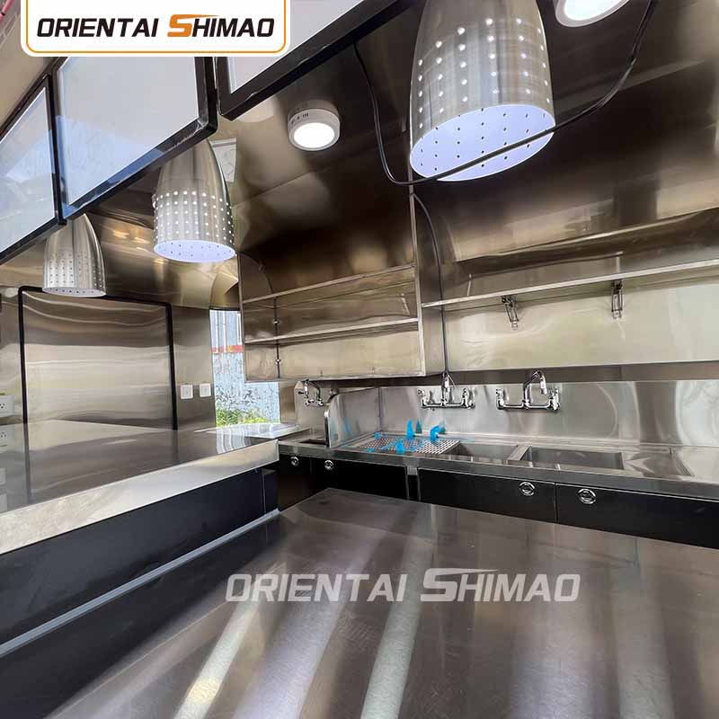 Para el material principal, elegimos acero inoxidable 304 de alta calidad, conocido por su excelente resistencia a la corrosión y excelente durabilidad, y puede mantener un rendimiento estable en una variedad de condiciones ambientales, lo que garantiza que nuestros productos Airstream Food Trailer puedan mantener su excelente calidad y funcionalidad incluso a largo plazo y enfrentar una variedad de desafíos. La excelente resistencia a la corrosión del acero inoxidable 304, por lo que el camión no se ve afectado fácilmente por la oxidación o el óxido, lo que prolonga enormemente su vida útil. La excelente resistencia a la corrosión del acero inoxidable 304 hace que el camión sea menos susceptible a la oxidación, lo que prolonga enormemente su vida útil.