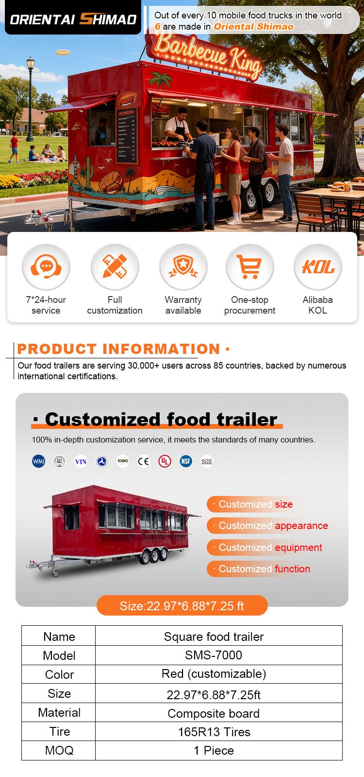 Podemos ofrecer certificaciones de remolques de catering de alimentos: DOT, CE, SGS, SCI, ISO, COC,
