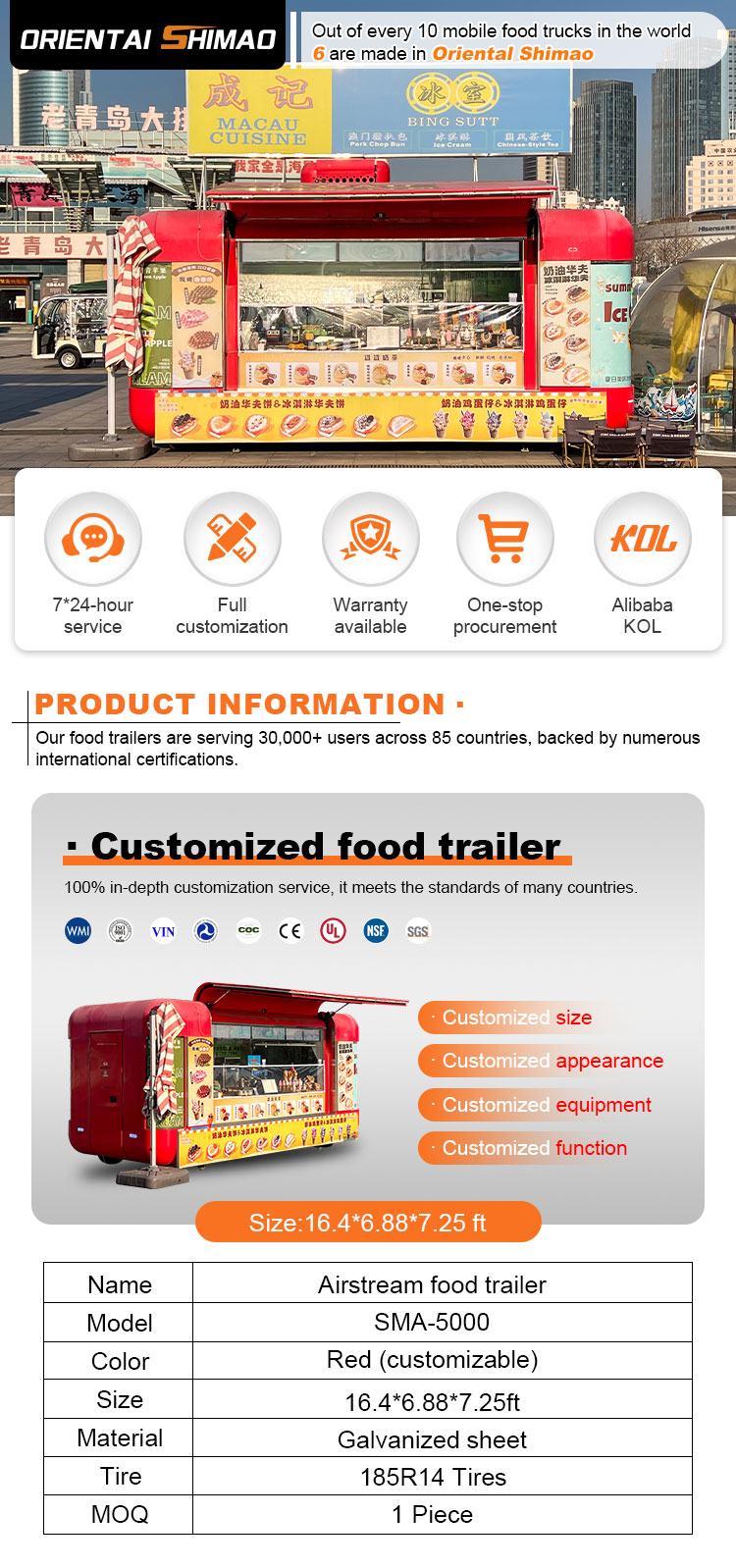 Podemos ofrecer certificaciones de remolques de catering de alimentos: DOT, CE, SGS, SCI, ISO, COC,