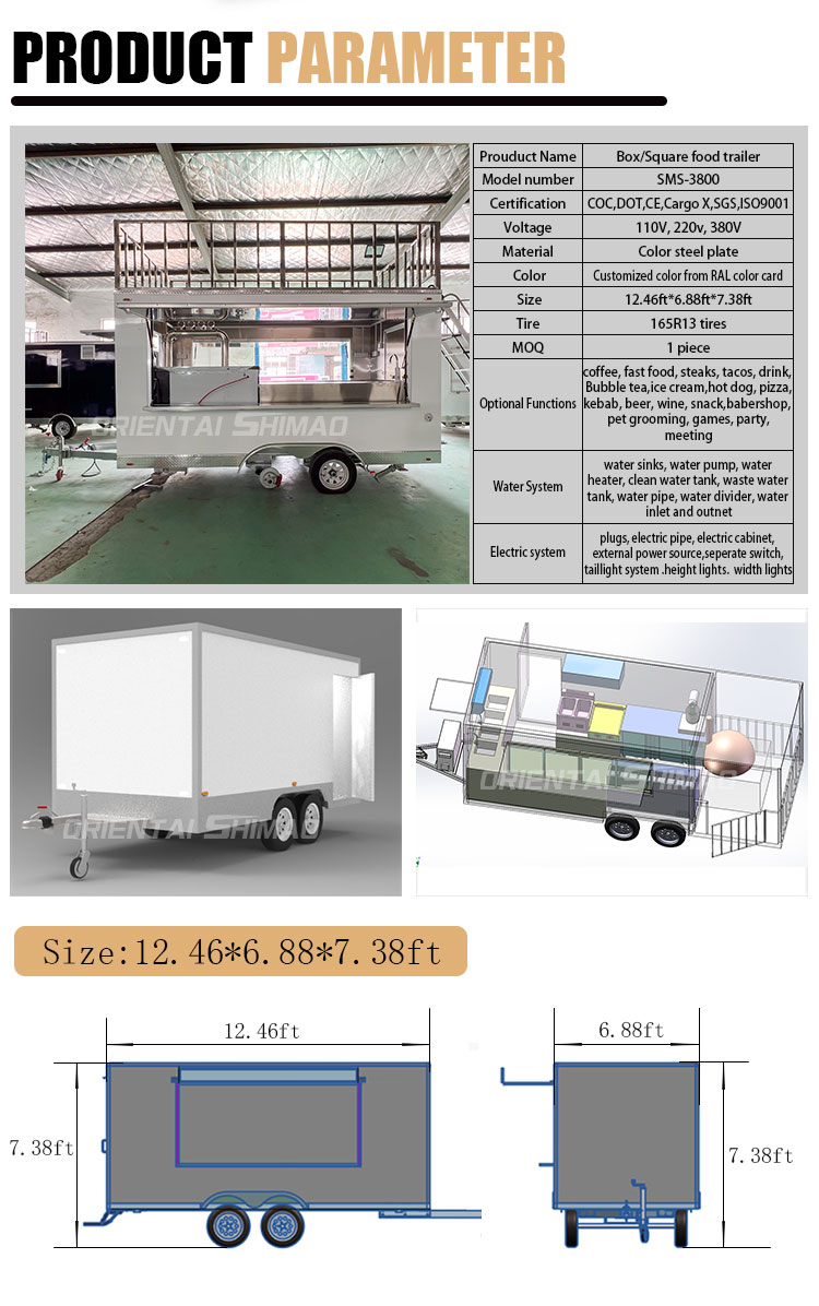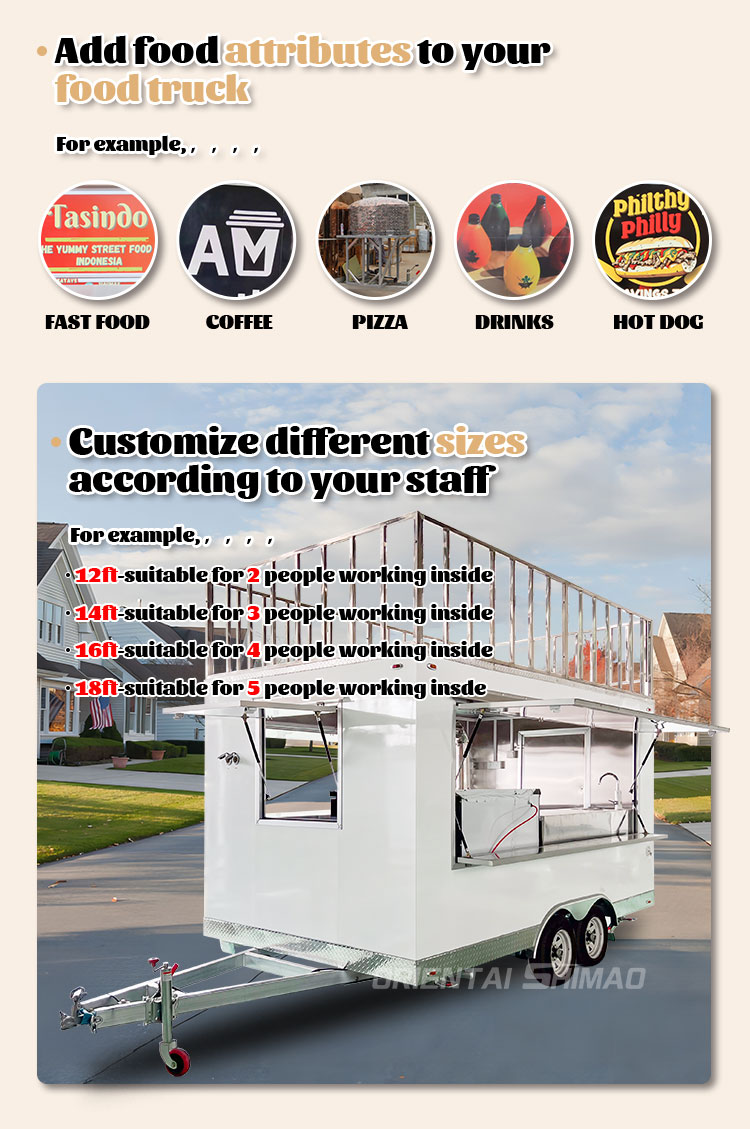 Más importante aún, el enfoque comercial flexible y versátil de Oriental Shimao Franchise-Ready Food Trailer se adapta perfectamente al ritmo cambiante de la vida moderna. Ya sea durante el almuerzo en el distrito de negocios o en el tiempo libre de la noche, puede ajustar rápidamente su estrategia para satisfacer las necesidades de catering de diferentes personas en diferentes momentos. Esta adaptabilidad sin precedentes no solo hace que Oriental Shimao Franchise-Ready Food Trailer se destaque en el altamente competitivo mercado de catering, sino que también lo convierte en una fuerza importante que impulsa la innovación y marca tendencias en la industria.