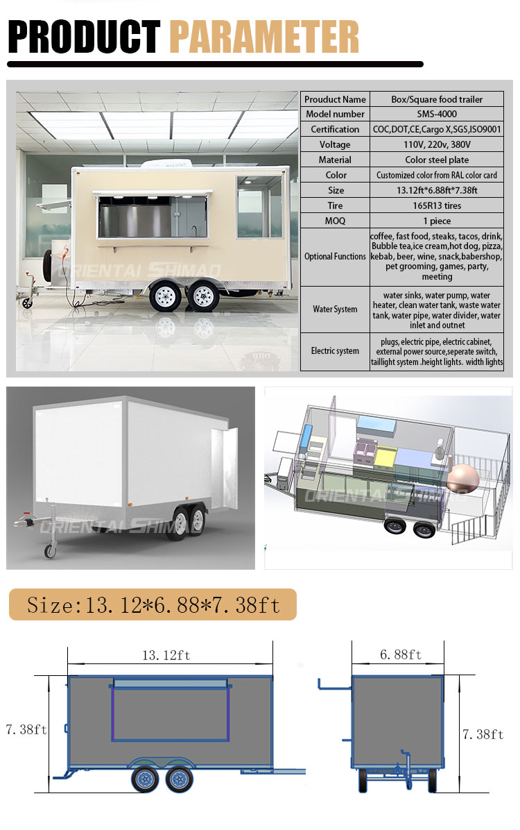 Podemos ofrecer carros de comida móviles para la venta Certificaciones: DOT, CE, SGS, SCI, ISO, COC,