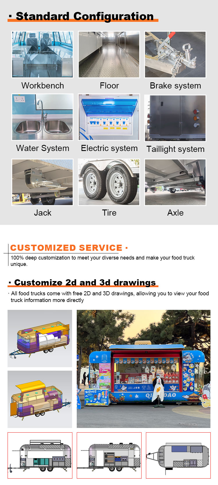 Como material principal, elegimos acero inoxidable 304 de alta calidad, conocido por su excelente resistencia a la corrosión y excelente durabilidad, y puede mantener un rendimiento estable en una variedad de condiciones ambientales, lo que garantiza que nuestros productos de remolques para catering de alimentos puedan mantener su excelente calidad y funcionalidad incluso a largo plazo y enfrentar una variedad de desafíos. La excelente resistencia a la corrosión del acero inoxidable 304, por lo que el camión no se ve afectado fácilmente por la oxidación o el óxido, lo que prolonga enormemente su vida útil. La excelente resistencia a la corrosión del acero inoxidable 304 hace que el camión sea menos susceptible a la oxidación, lo que prolonga enormemente su vida útil.