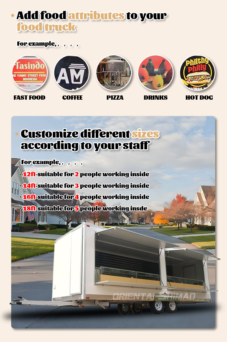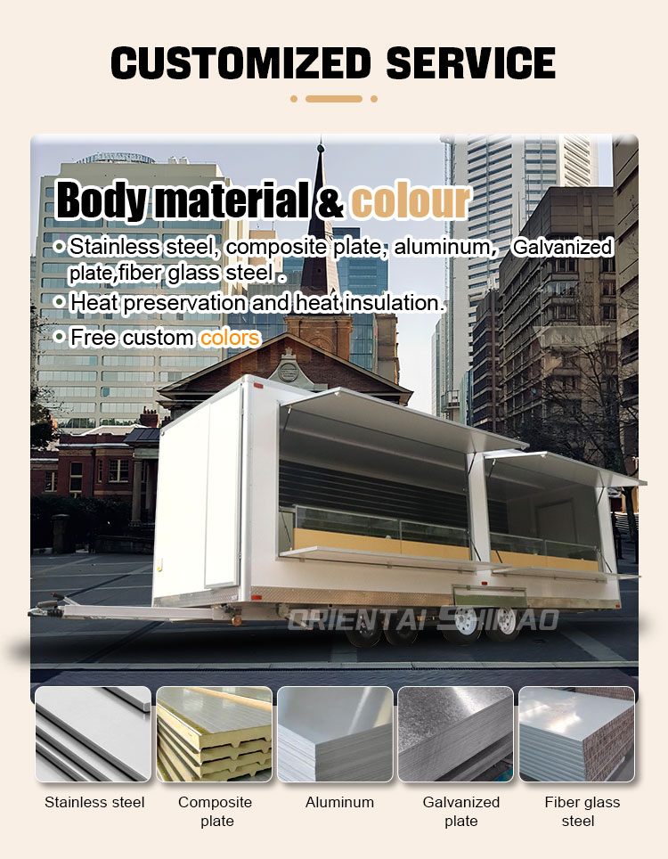 En Oriental Shimao Food Trailer de acero inoxidable, entendemos las necesidades únicas y las actividades personalizadas de cada uno de nuestros clientes, por lo que estamos comprometidos a proporcionar una gama completa de servicios de personalización en profundidad para garantizar que cada carrito de alimentos se ajuste perfectamente a su filosofía comercial e imagen de marca. La siguiente es una expansión detallada de nuestros principales servicios de personalización de productos: