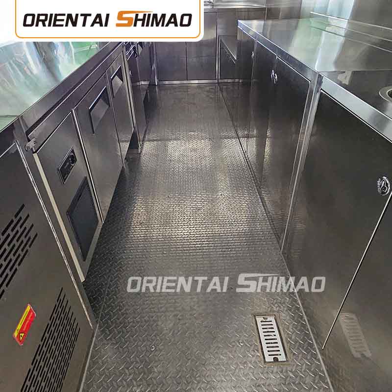 Para el material principal, elegimos el acero inoxidable 304 de alta calidad, que es conocido por su excelente resistencia a la corrosión y su excelente durabilidad, y puede mantener un rendimiento estable en una variedad de condiciones ambientales, asegurando que nuestros productos de remolque de alimentos personalizados puedan mantener su excelente calidad y funcionalidad incluso a largo plazo y enfrentar una variedad de desafíos. 304 La excelente resistencia de acero inoxidable a la corrosión, de modo que el remolque de alimentos personalizados no es fácil de ver afectado por la oxidación o el óxido, lo que extiende en gran medida su vida útil. La excelente resistencia a la corrosión del acero inoxidable 304 hace que los remolques de alimentos personalizados sean menos susceptibles a la oxidación o el óxido, extendiendo en gran medida su vida útil.