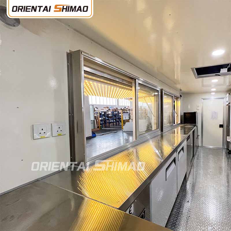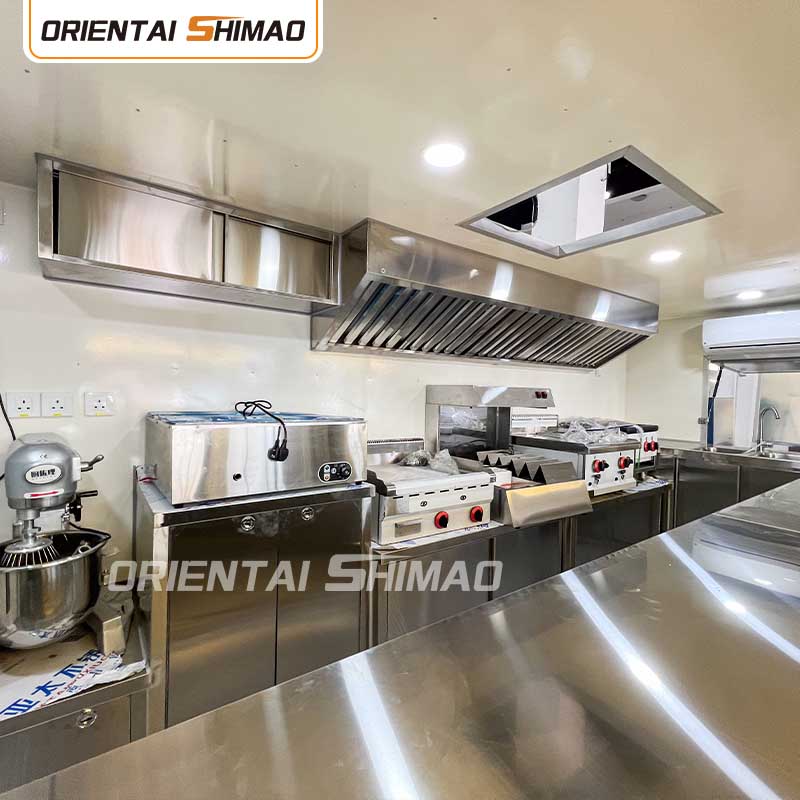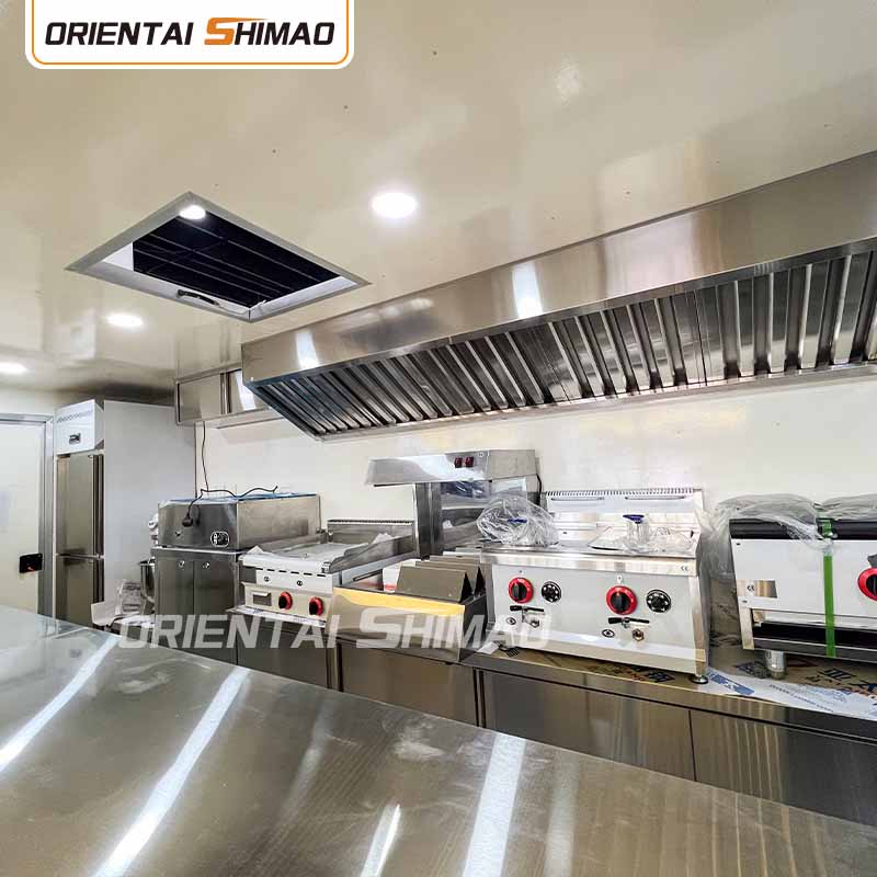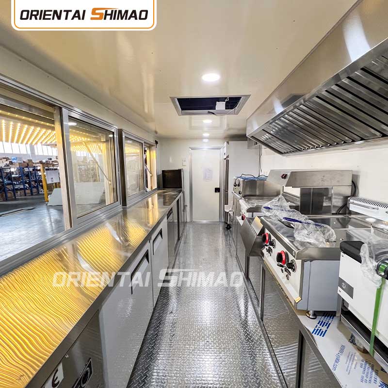 Disposición interior: Planificación razonable de la cocina, el comedor, el área de almacenamiento y otras áreas para garantizar el máximo uso del espacio. Al mismo tiempo, se configuran diferentes áreas funcionales según las necesidades del negocio, como área de producción, área de calefacción, área de venta, etc., para facilitar la operación y mejorar la eficiencia operativa.