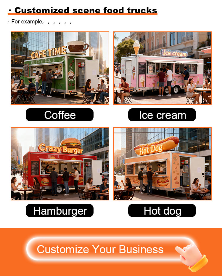 Modelado y estilo: la apariencia, modelado y estilo del food truck es un factor importante para atraer clientes. Se puede personalizar según la imagen de marca de los clientes, las características comerciales o las preferencias personales, como diseño aerodinámico, estilo retro, simplicidad moderna, etc.