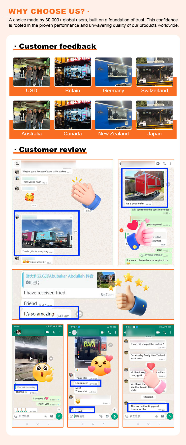 Material y proceso: elija materiales de alta calidad y un proceso de fabricación avanzado para garantizar que la apariencia del camión de comida sea hermosa y duradera.