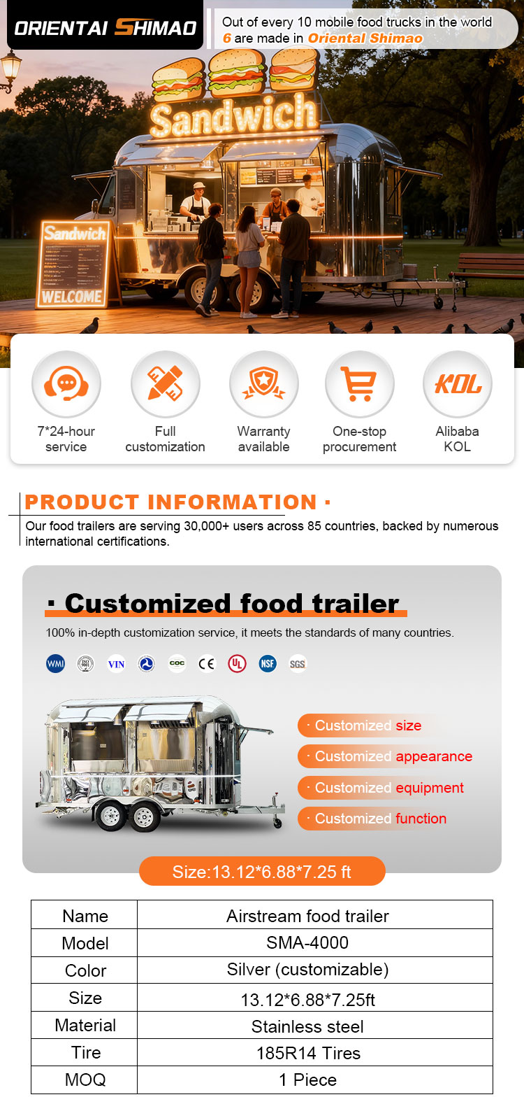 Remolque móvil para catering, comida callejera, carrito para perritos calientes, remolque de comida totalmente equipado, camión de comida