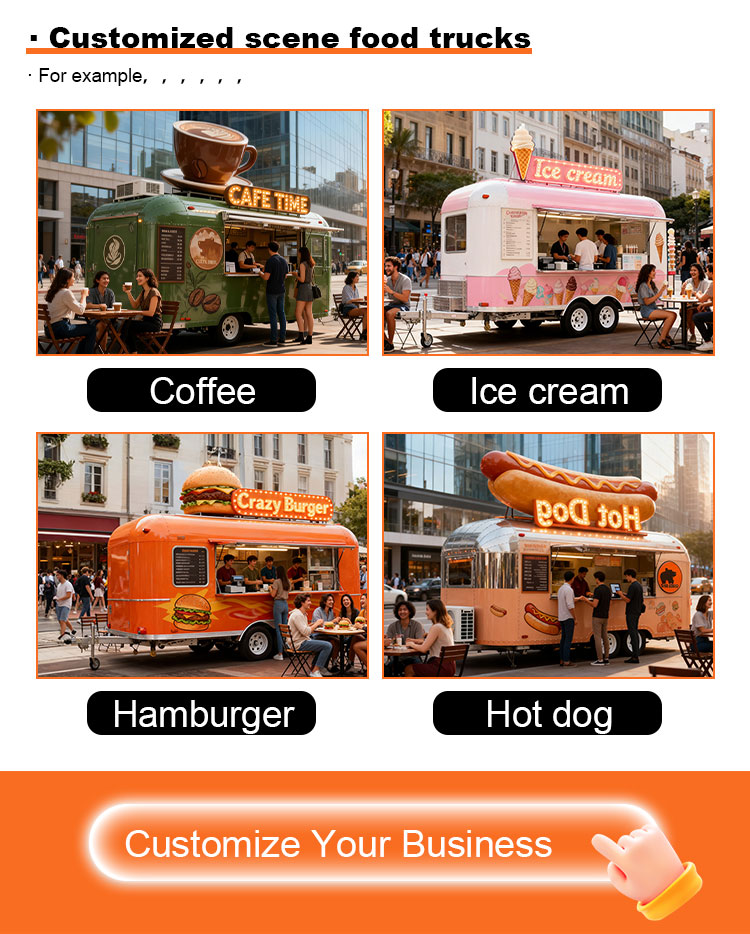 Remolque de comida Camión de comida conducible Cocina móvil Catering Remolque de comida callejera Concepto Camión de comida
