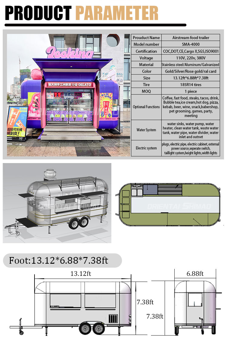 Podemos ofrecer carros de comida móviles para la venta Certificaciones: DOT, CE, SGS, SCI, ISO, COC,