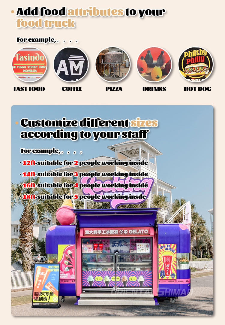 Material y proceso: elija materiales de alta calidad y un proceso de fabricación avanzado para garantizar que la apariencia del camión de comida sea hermosa y duradera.