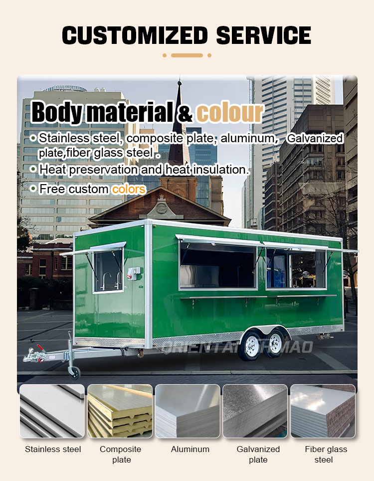 Material y proceso: elija materiales de alta calidad y un proceso de fabricación avanzado para garantizar que la apariencia del camión de comida sea hermosa y duradera.