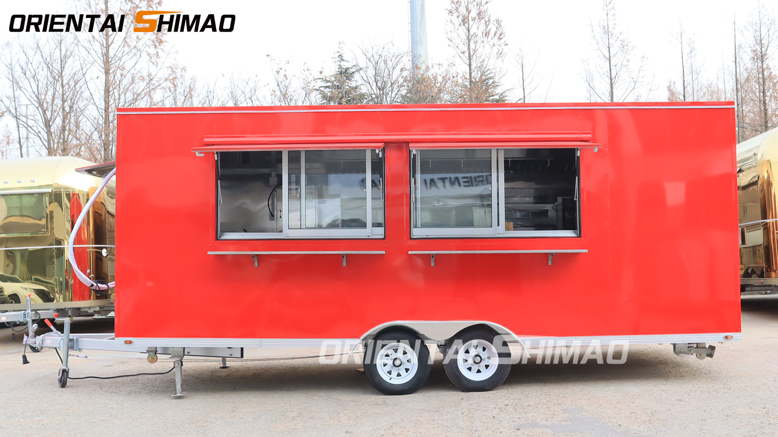 Estamos encantados de haber obtenido fotos impresionantes del último modelo de camiones de comida de la fábrica. Este es un camión de comida cuadrado puntiagudo de diseño exclusivo, su cuerpo adornado con un tono rojo brillante y llamativo, exudando vitalidad y encanto extraordinarios.