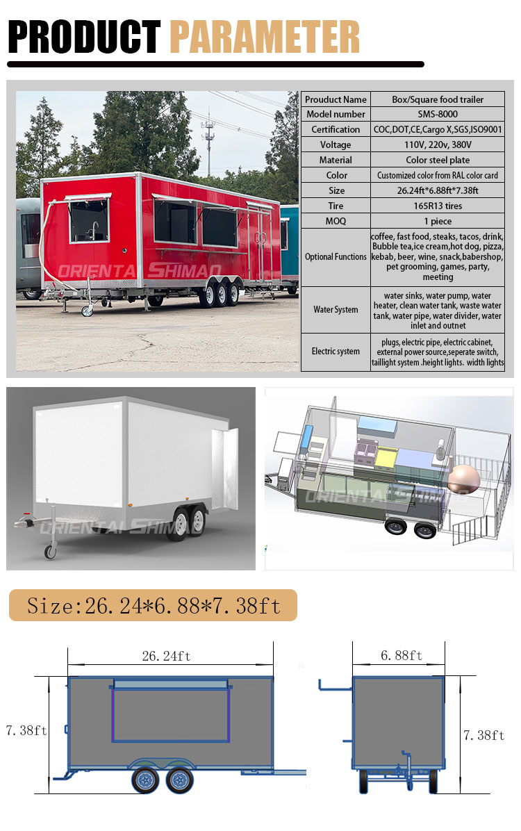 Podemos ofrecer carros de comida móviles para la venta Certificaciones: DOT, CE, SGS, SCI, ISO, COC,