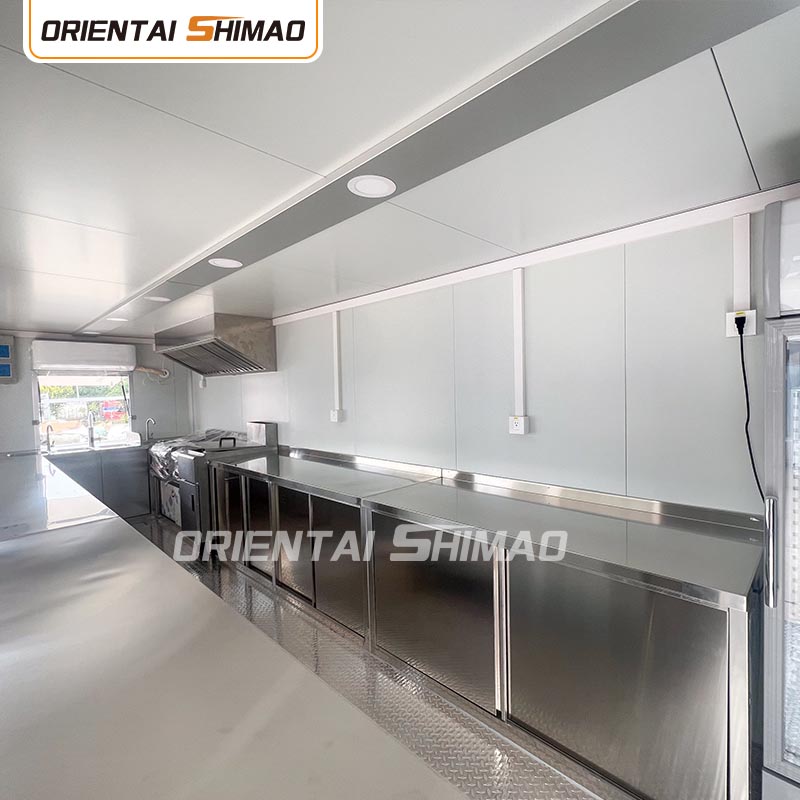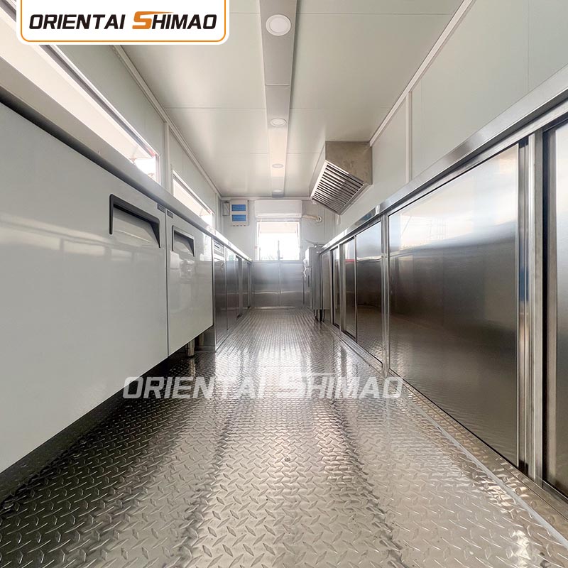 Disposición interior: Planificación razonable de la cocina, el comedor, el área de almacenamiento y otras áreas para garantizar el máximo uso del espacio. Al mismo tiempo, se configuran diferentes áreas funcionales según las necesidades del negocio, como área de producción, área de calefacción, área de venta, etc., para facilitar la operación y mejorar la eficiencia operativa.