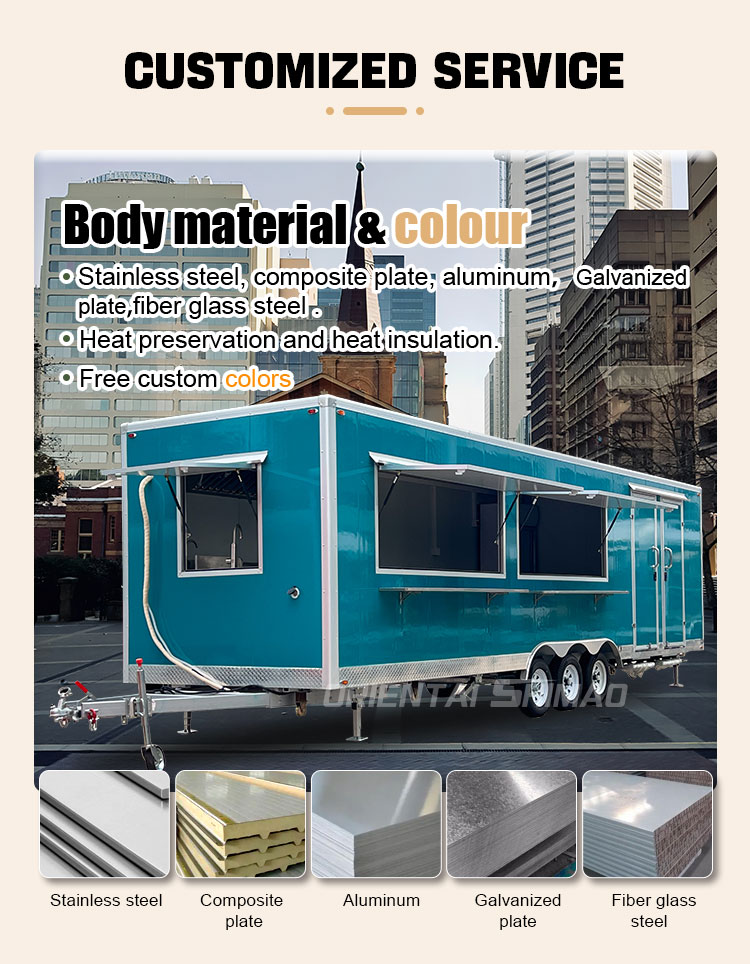 Material y proceso: elija materiales de alta calidad y un proceso de fabricación avanzado para garantizar que la apariencia del camión de comida sea hermosa y duradera.