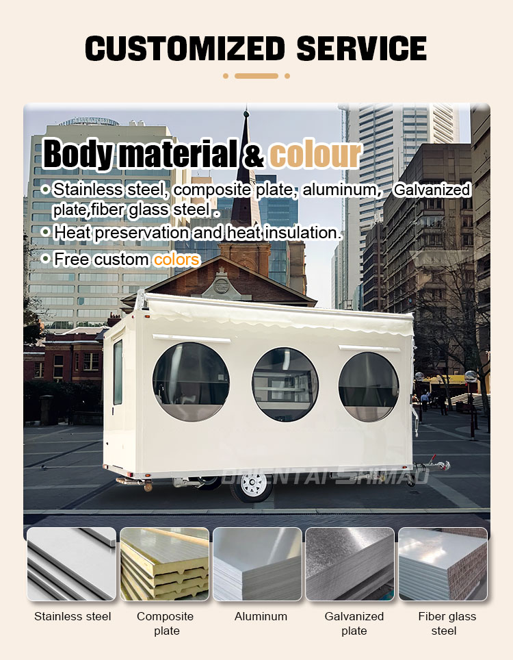 Material y proceso: elija materiales de alta calidad y un proceso de fabricación avanzado para garantizar que la apariencia del camión de comida sea hermosa y duradera.